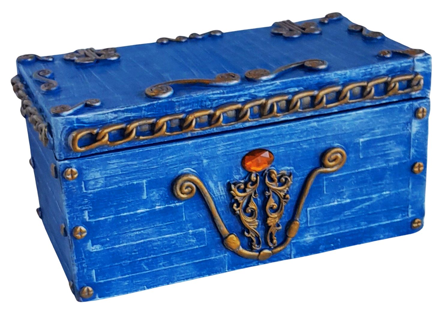 Caixa decorada confeccionada com placas produzidas com sobras de papelão de embalagem, detalhes dos arabescos em porcelana fria artesanal e com a tampa imantada. Ótima para guardar pequenos objetos ou até ser usada como peça decorativa. Peça exclusiva.