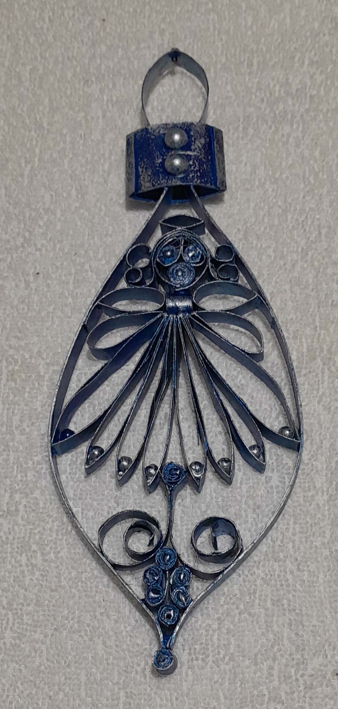Pendente Anjo Azul confeccionado com papelão de rolinhos de papelão de toilette, decorado com perolas.